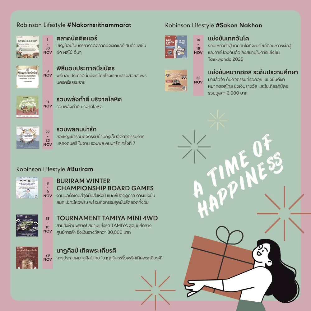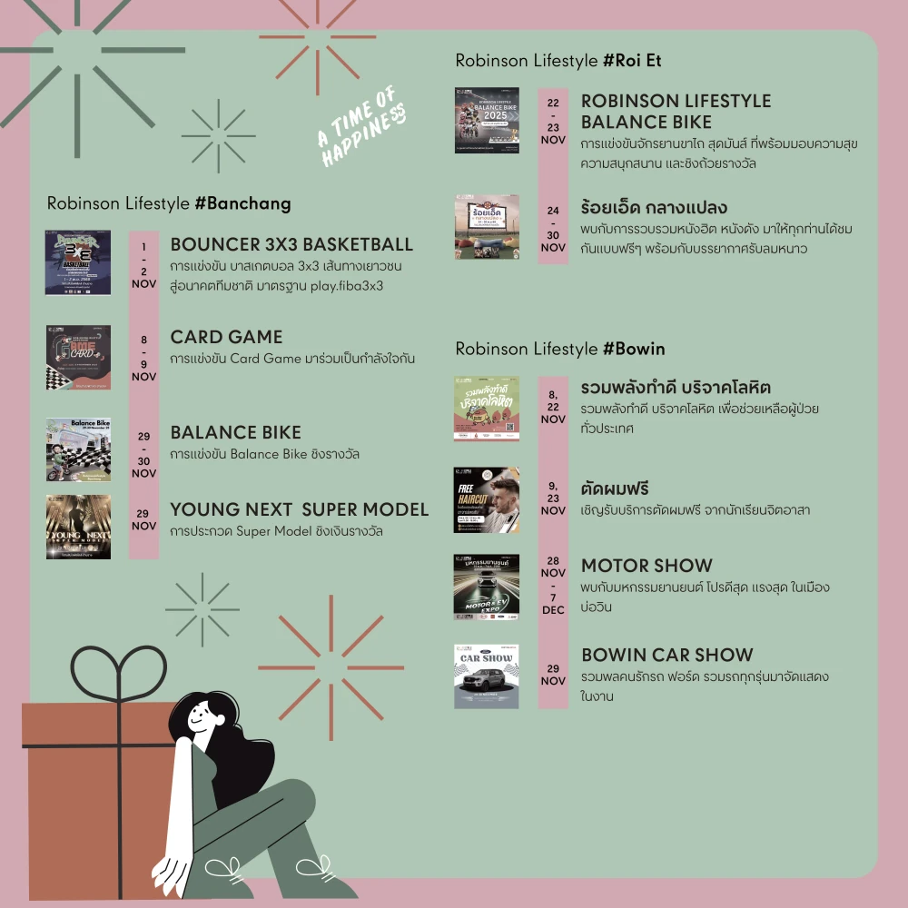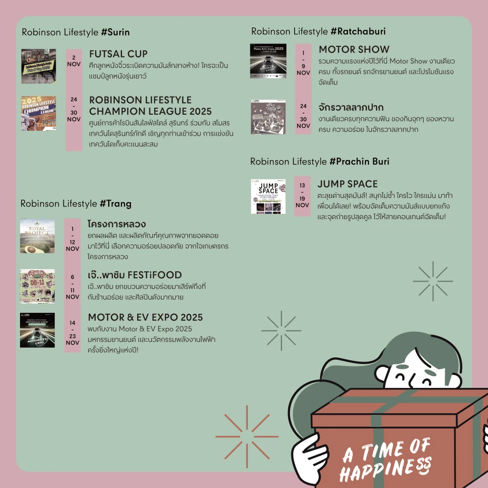 มาร่วมแบ่งปันความสุขในเดือนแห่งการให้ไปด้วยกันที่โรบินสันไลฟ์สไตล์ทุกสาขาทั่วประเทศ ตลอดเดือนพฤศจิกายน 2568 นี้ พร้อมเติมเต็มทุกวันของคุณให้มีรอยยิ้มและความหมายมากกว่าที่เคย