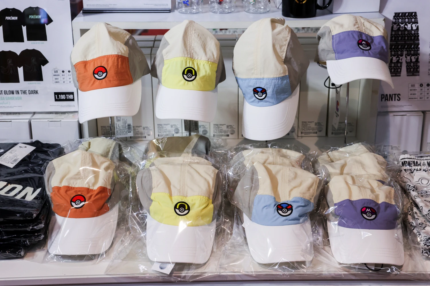 - สินค้า Collectors Club สาย Fashion Items เสื้อยืดเท่ๆ (ลาย Lucario,Ninetales ),กางเกง และหมวกแก๊ปสุดคูล