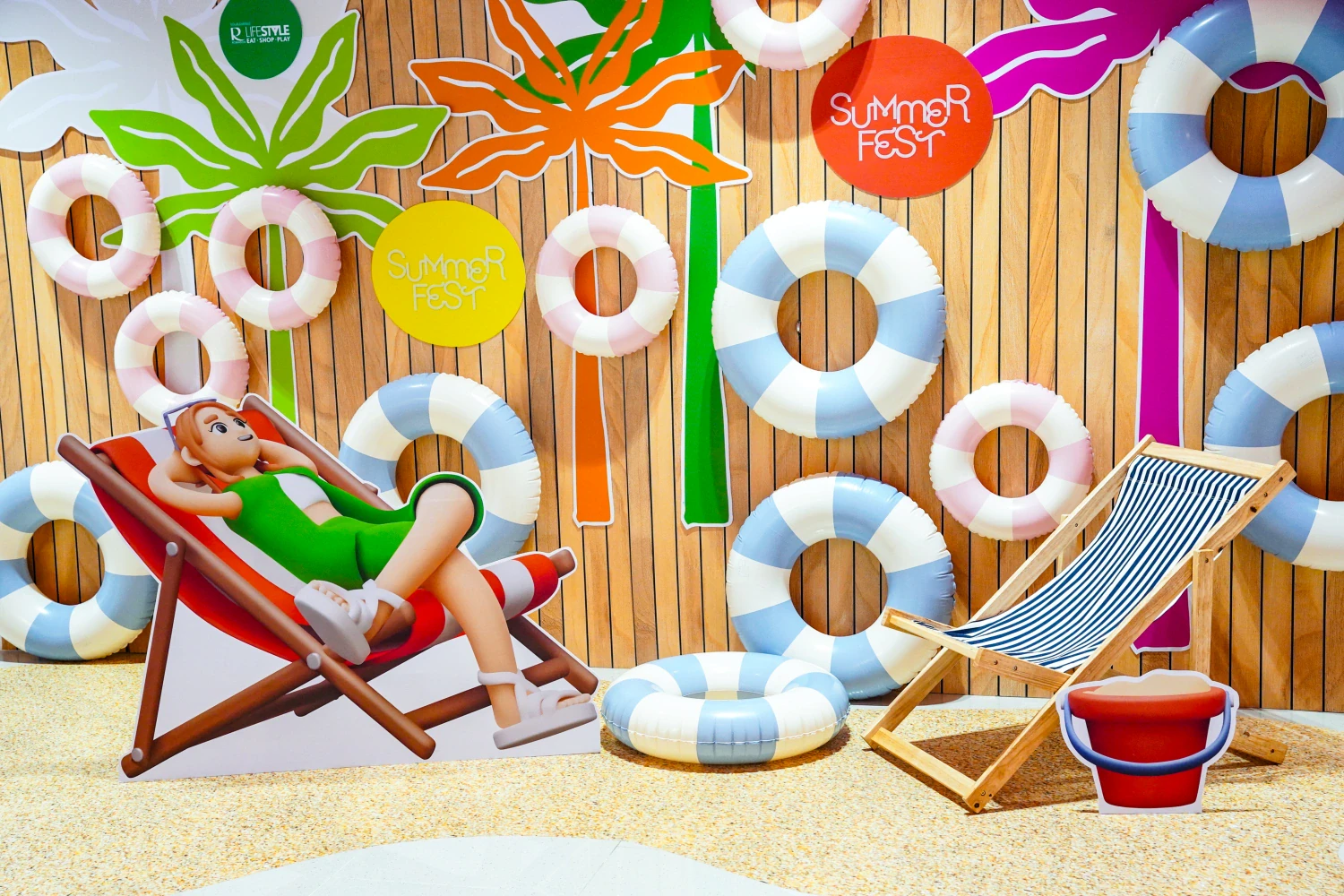 พร้อมกันนี้ โรบินสันไลฟ์สไตล์ยังเนรมิตบรรยากาศศูนย์การค้าให้เต็มไปด้วยความสนุกของฤดูร้อน โดยยกเอาสีสันบรรยากาศ และความสดใสริมชายหาด เช่น เก้าอี้ชาดหาดหลากสี ลูกบอสสดใส และห่วงยาง รวมไปถึงเอกลักษณ์ความเป็นไทย เช่น อักษรไทย แพตเทิร์นงานหัตถกรรมไทย เข้ามาผสมผสาน โดยทั้งหมดนำมาตีความใหม่ผ่านงานดีไซน์ในรูปแบบร่วมสมัย สร้างสรรค์เป็นแลนด์มาร์กต้อนรับซัมเมอร์สุดชิค ตกแต่งทั่วทั้งศูนย์การค้า ตั้งแต่บริเวณทางเข้าศูนย์ ทางเดินภายในศูนย์ รวมไปถึงต้นไม้ประดับไฟสวยงามยามค่ำคืน ถ่ายทอดกลิ่นอายวัฒนธรรมไทยในมุมมองใหม่ที่ทันสมัย พร้อมเชิญชวนลูกค้าให้ร่วมสัมผัสบรรยากาศแห่งความสุข ความโชคดี และเก็บภาพความประทับใจในช่วงซัมเมอร์นี้