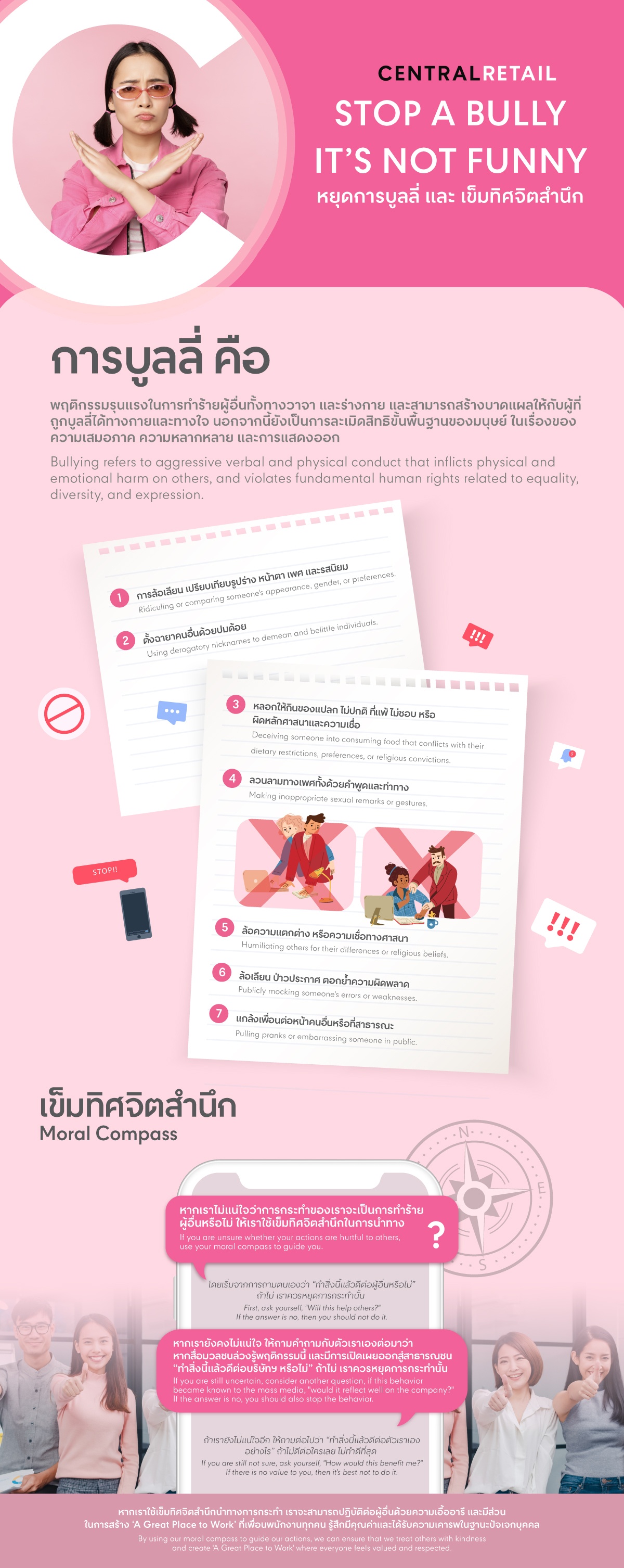 Central Retail recognizes the importance of respecting human rights across its value chain and operates in alignment with corporate ethics, legal requirements, regulations, and good governance principles. Central Retail’s Human Rights Policy upholds a zero-tolerance for discrimination and harassment, demonstrating a firm commitment to protecting employees at all levels from discrimination, threats, and both sexual and non-sexual harassment. This approach fosters an inclusive and supportive workplace culture.