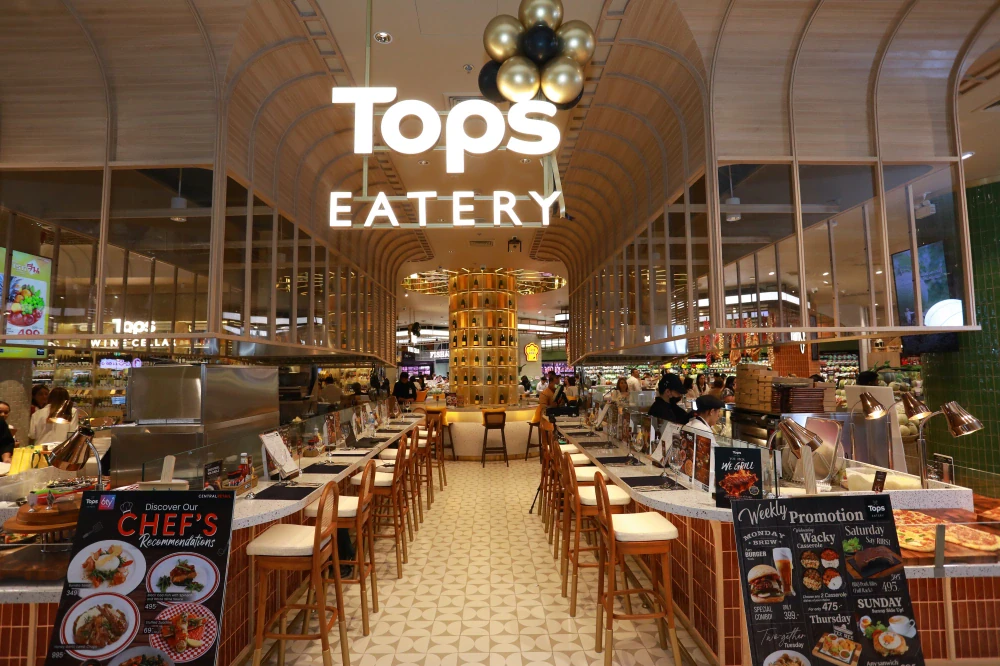 - Dining & Specialty Brands นำเสนอ Dining Lifestyle โฉมใหม่ ผ่านโซน TOPS Eatery ที่รวบรวมร้านอาหารดังของไทยที่ได้รับการการันตีโดยมิชลินไกด์ ได้แก่ ครัวเจ๊ง้อ ข้าวมันไก่บุญตงกี่ ร้านเจ้แดงสามย่าน ถึงเจียงใหม่ คิทเช่น และอีกมากมาย รวมถึงโซน The Baker Boulangerie & Patisserie ที่สร้างสรรค์ผลงานมาสเตอร์พีซของเบเกอรี่อาร์ติซาน พาสตรี กาแฟ และแซนด์วิช ที่ทำสดใหม่จากวัตถุดิบที่ดีที่สุด และอีกหนึ่งไฮไลต์สำคัญคือ Eatery International การนำเสนอรสชาติอาหารสไตล์เมดิเตอร์เรเนียน ที่มาพร้อมกับ Champagne Bar สุดเอ็กซ์คลูซีฟสร้างประสบการณ์การดื่มด่ำครั้งใหม่ด้วยวิถีการรับประทานอาหารที่หรูหรา และเอ็กซ์คลูซีฟ ตลอดจน Fine Food Zone โซนพิเศษที่ยกระดับประสบการณ์ระดับเวิลด์คลาส ด้วยการคัดสรรวัตถุดิบและเมนูเอ็กซ์คลูซีฟที่หาไม่ได้จากที่อื่น ในราคาสุดคุ้มค่า