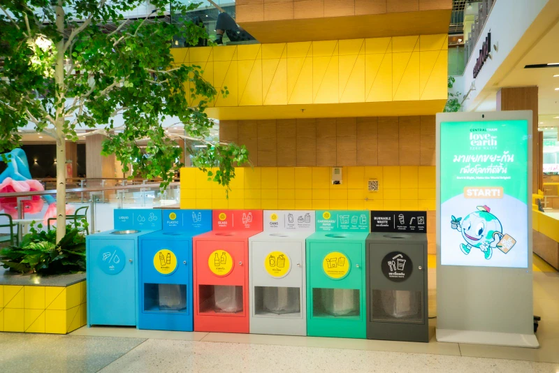เซ็นทรัล รีเทล ร่วมกับกลุ่มเซ็นทรัล ในการเชื่อมโยงทุกภาคส่วนให้ร่วมกันลดปริมาณขยะสู่หลุมฝังกลบให้เหลือน้อยที่สุด และมุ่งสู่เป้าหมาย Zero Waste ได้ร่วมพัฒนาโครงการ ‘น้องถูกถัง’ เป็นนวัตกรรมเอไอเพื่อสิ่งแวดล้อมที่พัฒนาโดยทีมนวัตกรรมของเซ็นทรัล รีเทล มีเป้าหมายเพื่อลดปริมาณขยะที่ผิดประเภท ลดภาระงานของพนักงาน และยกระดับพฤติกรรมการแยกขยะของลูกค้าและชุมชน โดยระบบเอไอสามารถตรวจจับประเภทขยะได้แบบเรียลไทม์ พร้อมแนะนำวิธีทิ้งที่ถูกต้อง ช่วยเพิ่มอัตราการรีไซเคิลได้อย่างมีประสิทธิภาพ